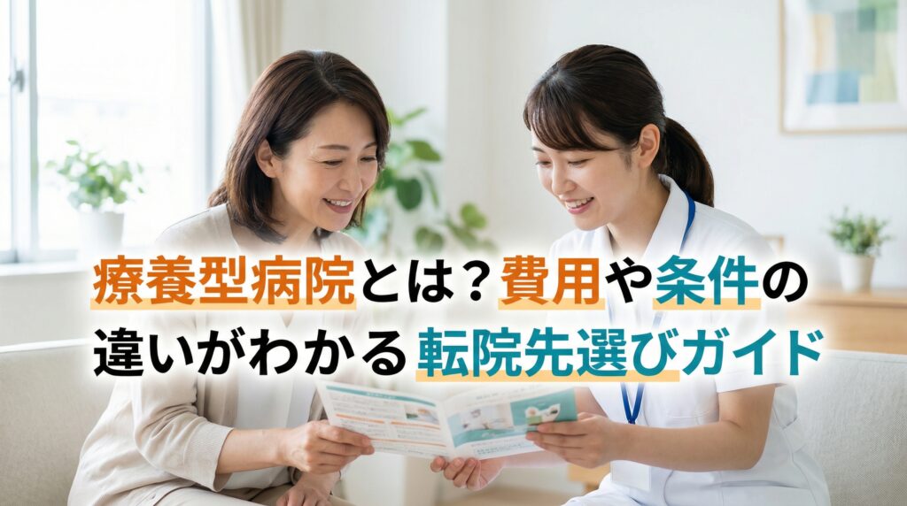 医師や相談員から突然このように告げられ、戸惑っている方もいらっしゃるのではないでしょうか。親御様の病状が落ち着いたとはいえ、自宅での介護は難しく、かといって一般的な老人ホームでは医療ケアが対応できるか不安……そんな時に提案されるのが「療養型病院」です。