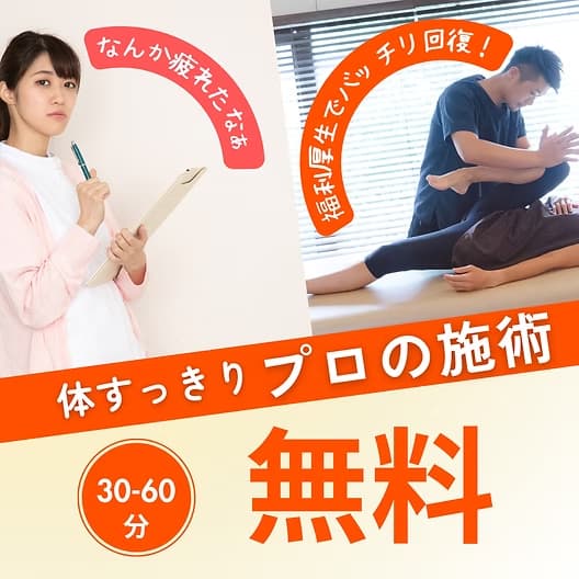 当社が展開する訪問医療マッサージ事業の専門スタッフによる本格的な施術を無料で提供しています。